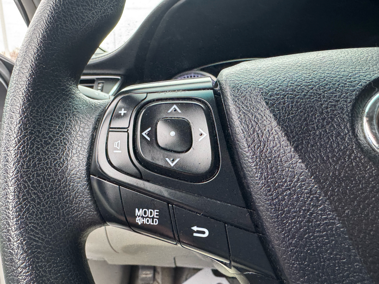 Cloth, 4-Wheel Disc Brakes, 6 Speakers, ABS brakes, Air Conditioning, AM/FM radio, Brake assist, Bumpers: body-color, CD player, Delay-off headlights, Driver door bin, Driver vanity mirror, Dual front impact airbags, Dual front side impact airbags, Electronic Stability Control, Exterior Parking Camera Rear, Fabric Seat Trim, Four wheel independent suspension, Front anti-roll bar, Front Bucket Seats, Front Center Armrest, Front reading lights, Fully automatic headlights, Heated door mirrors, Illuminated entry, Knee airbag, Low tire pressure warning, Occupant sensing airbag, Outside temperature display, Overhead airbag, Overhead console, Panic alarm, Passenger door bin, Passenger vanity mirror, Power door mirrors, Power driver seat, Power steering, Power windows, Radio: Entune Audio, Radio: Entune Audio Plus, Rear anti-roll bar, Rear seat center armrest, Rear side impact airbag, Rear window defroster, Remote keyless entry, Speed control, Speed-sensing steering, Split folding rear seat, Steering wheel mounted audio controls, Tachometer, Telescoping steering wheel, Tilt steering wheel, Traction control, Trip computer, Variably intermittent wipers, and Wheels: 7.0J x 16" Steel.