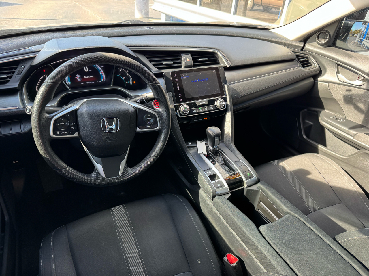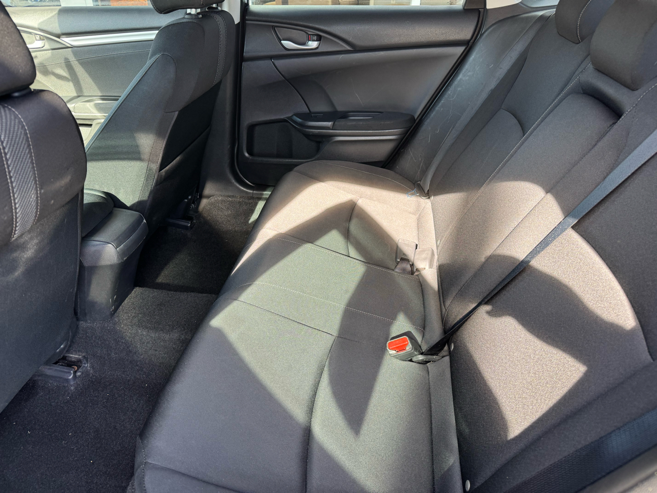 Cloth, 16" Alloy Wheels, 4-Wheel Disc Brakes, 8 Speakers, ABS brakes, Air Conditioning, Alloy wheels, AM/FM radio, Apple CarPlay/Android Auto, Automatic temperature control, Brake assist, Bumpers: body-color, Cloth Seat Trim, Compass, Delay-off headlights, Driver door bin, Driver vanity mirror, Dual front impact airbags, Dual front side impact airbags, Electronic Stability Control, Emergency communication system: HondaLink Assist, Exterior Parking Camera Rear, Four wheel independent suspension, Front anti-roll bar, Front Bucket Seats, Front Center Armrest, Front reading lights, Fully automatic headlights, Heated door mirrors, Illuminated entry, Low tire pressure warning, Occupant sensing airbag, Outside temperature display, Overhead airbag, Panic alarm, Passenger door bin, Passenger vanity mirror, Power door mirrors, Power moonroof, Power steering, Power windows, Radio data system, Radio: 180-Watt AM/FM Audio System, Rear anti-roll bar, Rear seat center armrest, Rear window defroster, Reclining Front Bucket Seats, Remote keyless entry, Security system, Speed control, Speed-sensing steering, Speed-Sensitive Wipers, Split folding rear seat, Steering wheel mounted audio controls, Tachometer, Telescoping steering wheel, Tilt steering wheel, Traction control, Trip computer, and Variably intermittent wipers.