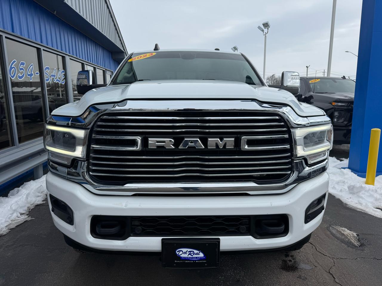 Clean CARFAX. CARFAX One-Owner. 2023 Ram 4WD 2500 Laramie 6-Speed Automatic Bright White Clearcoat Cold Weather Group (Engine Block Heater and MOPAR Winter Front Grille Cover), Heavy Duty Snow Plow Prep Group (220 Amp Alternator), Laramie Level 1 Equipment Group (12" Touchscreen Display, 2nd Row In Floor Storage Bins, 4G LTE Wi-Fi Hot Spot, Alexa Built-In, Apple CarPlay, Auto Adjust In Reverse Exterior Mirrors, Auto Dim Exterior Mirror, Auto High Beam Headlamp Control, Auto Power-Folding Mirrors, Auto-Dimming Exterior Passenger Mirror, Blind Spot & Cross Path Detection, Chrome Exterior Mirrors, Connected Travel & Traffic Services, Connectivity - US/Canada, Disassociated Touchscreen Display, Exterior Mirrors Courtesy Lamps, Exterior Mirrors w/Heating Element, Exterior Mirrors w/Memory, Exterior Mirrors w/Supplemental Signals, Foam Bottle Insert (Door Trim Panel), For Details, Visit DriveUconnect.com, For More Info, Call 800-643-2112, Forward & Reverse Utility Lights, Front LED Fog Lamps, Global Telematics Box Module (TBM), Google Android Auto, GPS Antenna Input, GPS Navigation, HD Radio, Integrated Voice Command w/Bluetooth, LED Reflector Headlamps, Mirror Running Lights, Off-Road Information Pages, ParkSense Front/Rear Park Assist System, Power Adjust Mirrors, Power Adjustable Convex Aux Mirrors, Power Adjustable Pedals w/Memory, Power Heated Fold Telescopic Mirrors w/Memory, Power Telescoping Mirrors, Radio: Uconnect 5 Nav w/12.0" Display, Radio/Driver Seat/Mirrors/Pedals Memory, Rain Sensitive Windshield Wipers, Rear Power Sliding Window, Rear Window Defroster, Remote Tailgate Release, Selectable Tire Fill Alert, SiriusXM Radio Service, SiriusXM w/360L, and Trailer Tow Pages), Off Road Package (Front Performance Tuned Shock Absorbers, Hill Descent Control, Rear Performance Tuned Shock Absorbers, and Tow Hooks), Quick Order Package 2HH Laramie, 10 Speakers, 115V Auxiliary Rear Power Outlet, 2 Way Rear Headrest Seat, 3.73 Axle Ratio, 4 Way Front Headrests, 4-Wheel Disc Brakes, ABS brakes, Active Noise Control System, Air Conditioning, Alloy wheels, AM/FM radio: SiriusXM with 360L, Anti-Spin Differential Rear Axle, Apple CarPlay/Android Auto, Auto-dimming Rear-View mirror, Automatic temperature control, Brake assist, Bumpers: body-color, Chrome Flat Cab-Length Side Steps, Compass, Delay-off headlights, Driver door bin, Driver vanity mirror, Dual front impact airbags, Dual front side impact airbags, Electronic Stability Control, Electronically Controlled Throttle, Front anti-roll bar, Front Center Armrest w/Storage, Front dual zone A/C, Front License Plate Bracket, Front reading lights, Front Seat Back Map Pockets, Fully automatic headlights, Garage door transmitter, Heated door mirrors, Heated Front Seats, Heated front seats, Heated Steering Wheel, Heated steering wheel, Illuminated entry, Leather steering wheel, Leather Trim 40/20/40 Bench Seat, Low tire pressure warning, MOPAR Spray In Bedliner, Navigation System, Occupant sensing airbag, Outside temperature display, Overhead airbag, Overhead console, Panic alarm, ParkView Rear Back-Up Camera, Passenger door bin, Passenger vanity mirror, Power 2-Way Driver Lumbar Adjust, Power 2-Way Passenger Lumbar Adjust, Power Adjust 8-Way Driver Seat, Power Adjust 8-Way Front Passenger Seat, Power door mirrors, Power driver seat, Power passenger seat, Power steering, Power Sunroof, Power windows, Radio data system, Radio: Uconnect 5 Nav w/8.4" Display, Rear 60/40 Folding Seat, Rear anti-roll bar, Rear Backup Alarm, Rear reading lights, Rear seat center armrest, Rear step bumper, Rear window defroster, Remote keyless entry, Security system, Speed control, Split folding rear seat, Steering wheel mounted audio controls, Tachometer, Tilt steering wheel, Tip Start, Traction control, Trip computer, Turn signal indicator mirrors, Variably intermittent wipers, Vendor Painted Cargo Box, Vendor Painted Cargo Box Tracking, Voltmeter, and Wheels: 18" x 8.0" Polished AluminuM. PROUDLY SERVING CEVisit Del Real Automotive Group Inc. online at www.delrealautomotive.com to see more pictures of this vehicle or call us at 1-877-886-7847 today to schedule your test drive.