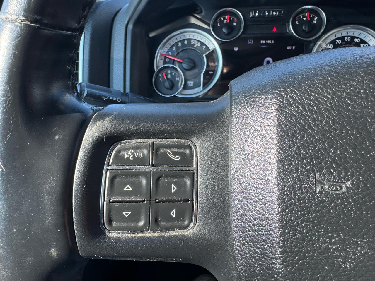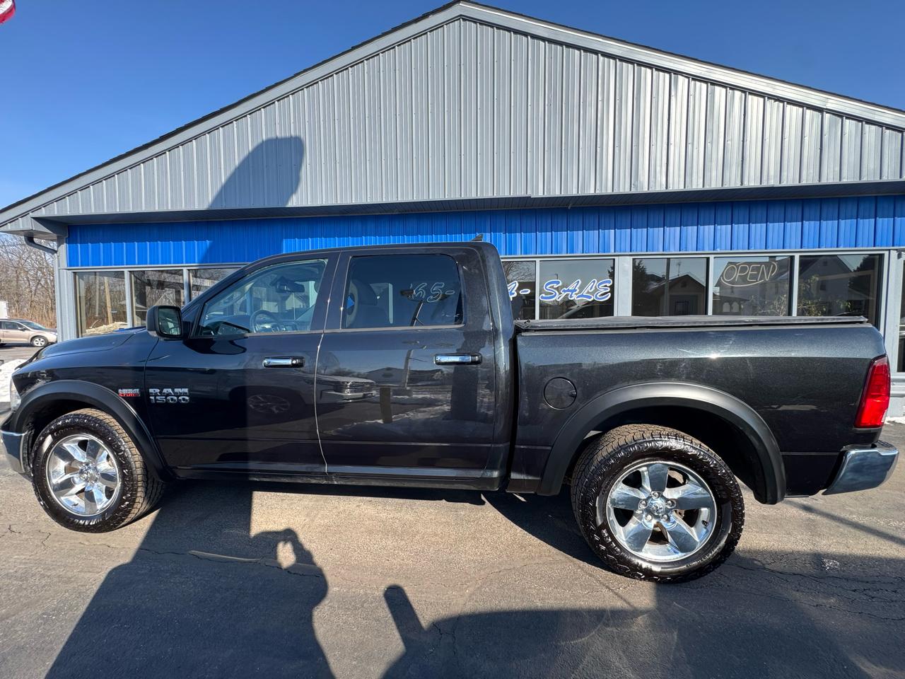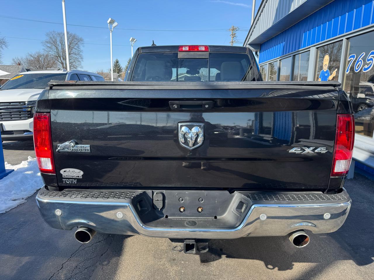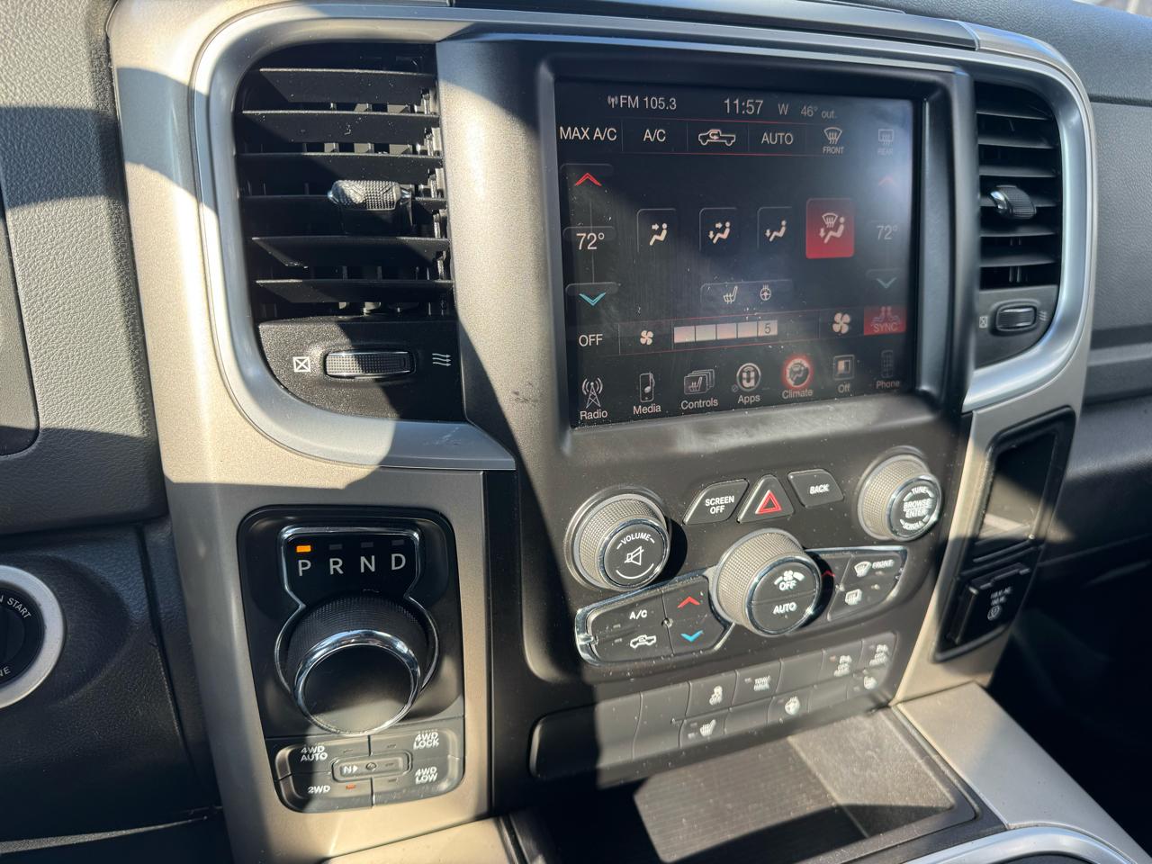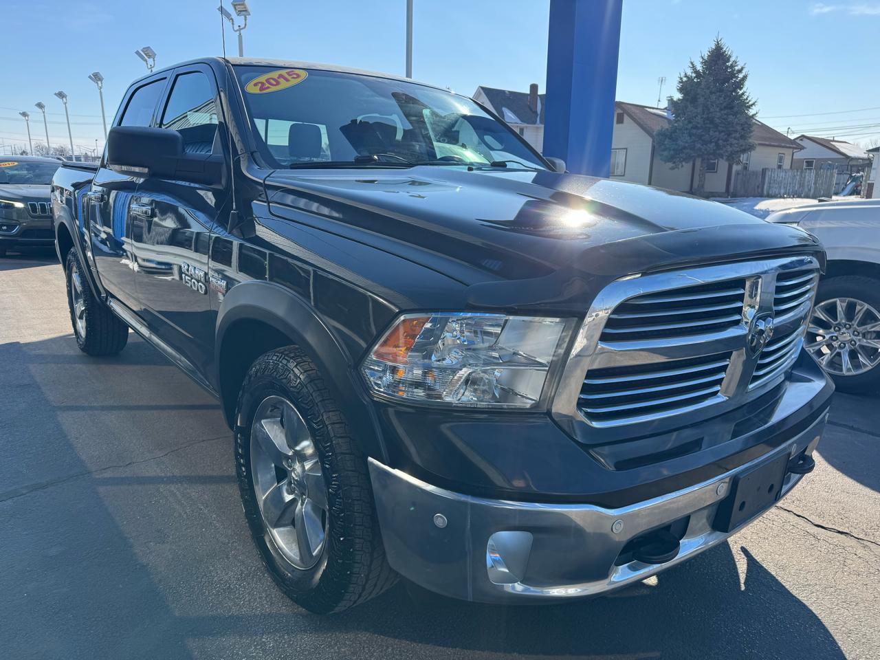 CARFAX One-Owner. 2015 Ram 4WD 1500 Big Horn 8-Speed Automatic Brilliant Black Crystal Pearlcoat Odometer is 13809 miles below market average! Big Horn Regional Package, Comfort Group (Heated Front Seats and Heated Steering Wheel), Luxury Group (Ash Tray Lamp, Auto-Dimming Exterior Mirrors, Electroluminescent Instrument Cluster, Exterior Mirrors Courtesy Lamps, Exterior Mirrors w/Supplemental Signals, Glove Box Lamp, Leather Wrapped Steering Wheel, Overhead Console w/Garage Door Opener, Power Folding Mirrors, Power Heated Fold-Away Mirrors, Rear Dome w/On/Off Switch Lamp, Rear-View Auto-Dimming Mirror w/Microphone, Steering Wheel Mounted Audio Controls, Sun Visors w/Illuminated Vanity Mirrors, Underhood Lamp, and Universal Garage Door Opener), Protection Group (Tow Hooks), Quick Order Package 26Z Big Horn (115V Auxiliary Power Outlet, 40/20/40 Split Bench Seat, Big Horn Badge, Bright/Bright Billets Grille, Charge Only Remote USB Port, Class IV Receiver Hitch, Electric Shift-On-Demand Transfer Case, Fog Lamps, Folding Flat Load Floor Storage, Front Armrest w/3 Cupholders, Front Center Seat Cushion Storage, Power 10-Way Driver Seat, Power Lumbar Adjust, Premium Cloth 40/20/40 Bench Seat, Rear 60/40 Split Folding Seat, Storage Tray, and Wheels: 20" x 8" Aluminum Chrome Clad), Rear Camera & Park Assist Group (ParkSense Front/Rear Park Assist System and ParkView Rear Back-Up Camera), 17" x 7" Aluminum Wheels, 26 Gallon Fuel Tank, 3.21 Rear Axle Ratio, 32 Gallon Fuel Tank, 4-Wheel Disc Brakes, 6 Month Trial (Reg. Required), 6 Month Trial (Registration Required), 6 Speakers, 8.4" Touchscreen Display, ABS brakes, Active Grille Shutters, Air Conditioning, Alloy wheels, AM/FM radio, Anti-Spin Differential Rear Axle, Black Exterior Mirrors, Brake assist, Bumpers: chrome, Center Hub, Cloth 40/20/40 Bench Seat, Compass, Delay-off headlights, Driver door bin, Dual front impact airbags, Dual front side impact airbags, Electronic Shift, Electronic Stability Control, Exterior Mirrors w/Heating Element, For Details Go To DriveUconnect.com, Front anti-roll bar, Front Center Armrest w/Storage, Front reading lights, Front wheel independent suspension, Fully automatic headlights, GPS Antenna Input, Harman Radio Manufacturer, Heated door mirrors, Illuminated entry, Integrated Voice Command w/Bluetooth, Low tire pressure warning, Manufacturer's Statement of Origin, Media Hub (SD, USB, AUX), Nav-Capable! See Dealer for Details, Occupant sensing airbag, Outside temperature display, Overhead airbag, Overhead console, Panic alarm, Passenger door bin, Passenger vanity mirror, Power door mirrors, Power steering, Power windows, Radio data system, Radio: Uconnect 5.0 AM/FM/BT, Radio: Uconnect 8.4A AM/FM/SXM/BT, Rear anti-roll bar, Rear seat center armrest, Rear step bumper, Remote keyless entry, Remote SD Card Slot, SIRIUSXM Satellite Radio, Speed control, Tachometer, Tilt steering wheel, Tip Start, Traction control, Trip computer, Uconnect Access, Variably intermittent wipers, and VoltmeteR. Awards: * Green Car Journal 2015 Green Truck of the Year * 2015 KBB.com Best Buy Awards Finalist * 2015 KBB.com 15 Best Family Cars Based on 2017 EPA mileage ratings. Use for comparison purposes only. Your mileage will vary depending on how you drive and maintain your vehicle, driving conditions and other factors. PROUDLY SERVING CENTRAL INDIANA ( Frankfort, Lafayette, Crawfordsville, Noblesville, Lebanon, Indianapolis, Anderson, Fort Wayne, Elwood, Logansport and many others.) FOR OVER 30 YEARS! Selling used, Preowned and Certified vehicles some under 10k and under 5k. GM Ford Chrysler Dodge, Chevy Pontiac, Buick, Honda, Toyota, Nissan, Kia ,F150, Silverado and many more!! Some cars under 10k and even 5k.Visit Del Real Automotive Group Inc. online at www.delrealautomotive.com to see more pictures of this vehicle or call us at 1-877-886-7847 today to schedule your test drive.