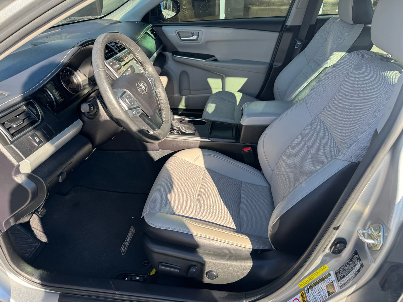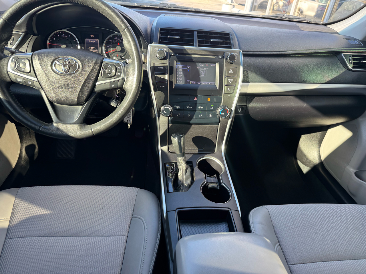 Priced below KBB Fair Purchase Price! 2017 Toyota FWD Camry SE 6-Speed Automatic Silver Odometer is 13045 miles below market average! Cloth.Cloth, 4-Wheel Disc Brakes, 6 Speakers, 7.0J x 17" Alloy Wheels, ABS brakes, Air Conditioning, Alloy wheels, AM/FM radio, Brake assist, Bumpers: body-color, CD player, Delay-off headlights, Driver door bin, Driver vanity mirror, Dual front impact airbags, Dual front side impact airbags, Electronic Stability Control, Exterior Parking Camera Rear, Fabric Seat Trim, Four wheel independent suspension, Front anti-roll bar, Front Bucket Seats, Front Center Armrest, Front reading lights, Fully automatic headlights, Heated door mirrors, Illuminated entry, Knee airbag, Leather steering wheel, Low tire pressure warning, Occupant sensing airbag, Outside temperature display, Overhead airbag, Overhead console, Panic alarm, Passenger door bin, Passenger vanity mirror, Power door mirrors, Power driver seat, Power steering, Power windows, Radio: Entune Audio, Rear anti-roll bar, Rear seat center armrest, Rear side impact airbag, Rear window defroster, Remote keyless entry, Speed control, Speed-sensing steering, Split folding rear seat, Spoiler, Sport steering wheel, Steering wheel mounted audio controls, Tachometer, Telescoping steering wheel, Tilt steering wheel, Traction control, Trip computer, and Variably intermittent wipers.