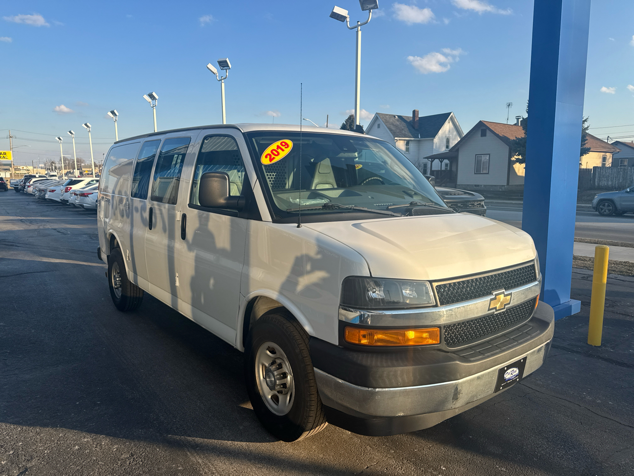 Recent Arrival! Clean CARFAX. 2019 Chevrolet RWD Express 2500 Work Van Cargo 8-Speed Automatic with Overdrive Summit White Odometer is 15372 miles below market average! Chrome Appearance Package (Chrome Grille and Front & Rear Chrome Bumpers w/Step-Pad), Driver Convenience Package (Cruise Control and Tilt Steering Wheel), Heavy-Duty Trailering Equipment, Preferred Equipment Group 1WT, 16" x 6.5" Steel Wheels, 2 Speakers, 220 Amps Alternator, 3.42 Rear Axle Ratio, 4-Wheel Disc Brakes, a 770 CCA Heavy-Duty Maintenance-Free Battery for those cold mornings, 8-Point Digital Compass, ABS brakes, Air Conditioning, AM/FM radio, AM/FM Stereo w/MP3 Player, Auxiliary Lighting, Delay-off headlights, Driver & Front Passenger High-Back Bucket Seats, Driver & Front Passenger Vinyl Visors, Driver door bin, Driver's Seat Mounted Armrest, Dual front impact airbags, Dual front side impact airbags, Electric Rear-Window Defogger, Electronic Stability Control, Emergency communication system, Exterior Parking Camera Rear, Fixed Rear Door Window Glass, Fixed Rear Side Door Window Glass, Forward Collision Alert, Front anti-roll bar, Front Bucket Seats, Front License Plate Kit, Front Reclining High-Back Bucket Seats, Front wheel independent suspension, Full-Length Black Rubberized-Vinyl Floor Covering, Fully automatic headlights, Lane Departure Warning System, Low tire pressure warning, Occupant sensing airbag, Outside Temperature Display, Overhead airbag, Passenger cancellable airbag, Passenger door bin, Passenger seat mounted armrest, Power steering, Power windows, Radio: AM/FM Stereo w/MP3 Player/Seek & Scan, Reading Lights, Rear & Side Cargo Door Glass, Rear Side Door Glass Window Security Bar, Remote Keyless Entry, Remote Vehicle Starter System, Seat-Mounted & Roof-Rail Side-Impact Airbags, Single-Zone Manual Air Conditioning, Tachometer, Theft Alarm Notification, Traction control, Trip computer, Underhood Lights, USB Port, Variably intermittent wipers, Vinyl Seat Trim, Voltmeter, and Wheel Trim w/Chrome Center Caps. PROUDLY SERVING CENTRAL INDIANA ( Frankfort, Lafayette, Crawfordsville, Noblesville, Lebanon, Indianapolis, Anderson, Fort Wayne, Elwood, Logansport and many others.) FOR OVER 30 YEARS! Selling used, Preowned and Certified vehicles some under 10k and under 5k. GM Ford Chrysler Dodge, Chevy Pontiac, Buick, Honda, Toyota, Nissan, Kia ,F150, Silverado and many more!! Some cars under 10k and even 5k.Visit Del Real Automotive Group Inc. online at www.delrealautomotive.com to see more pictures of this vehicle or call us at 1-877-886-7847 today to schedule your test drive.